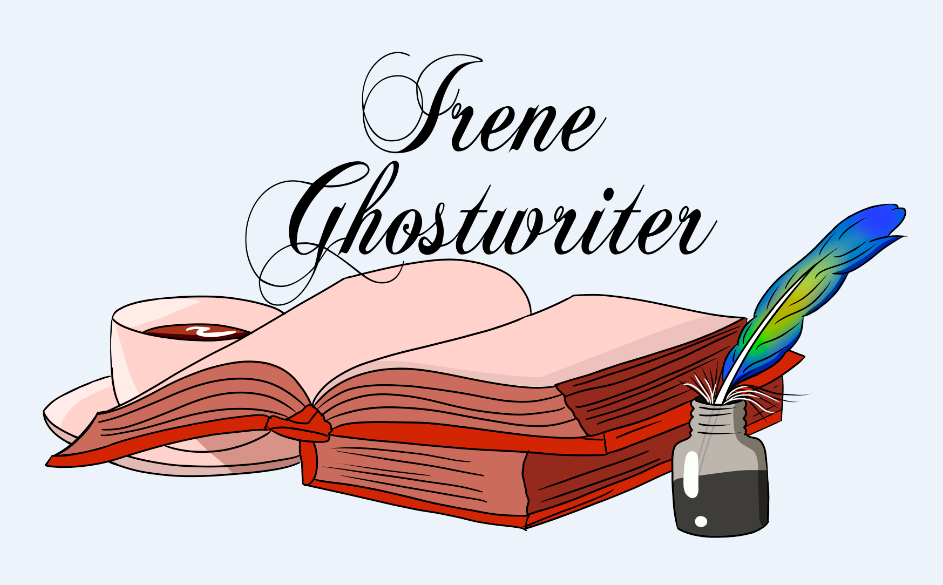 Me sentí tan creativa, que le hice tres dibujos diferentes para su blog. El logo de su empresa era "Irene Ghost Writter" haciendo referencia a su trabajo como escritora fantasma. De esta manera, realicé varios logos: